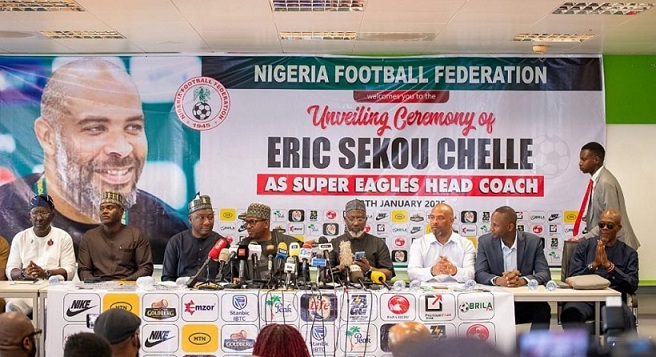 Eric Sekou Chelle was on Monday unveiled by the Nigeria Football Federation (NFF) as the new substantive coach of the Super Eagles.